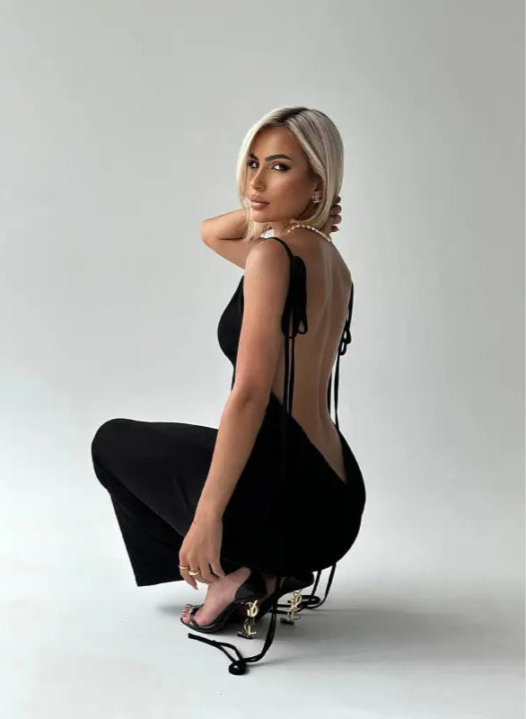 Elevate your summer wardrobe with this stunning backless lace-up maxi dress. Designed for the modern, confident woman, this dress combines elegance and sensuality in a way that effortlessly turns heads. The sleek, body-hugging silhouette enhances your natural curves, while the open back with adjustable lace-up straps adds a bold, feminine touch. Crafted from lightweight, breathable polyester, it feels soft against the skin and is perfect for warm-weather evenings, beach vacations, or special occasions.