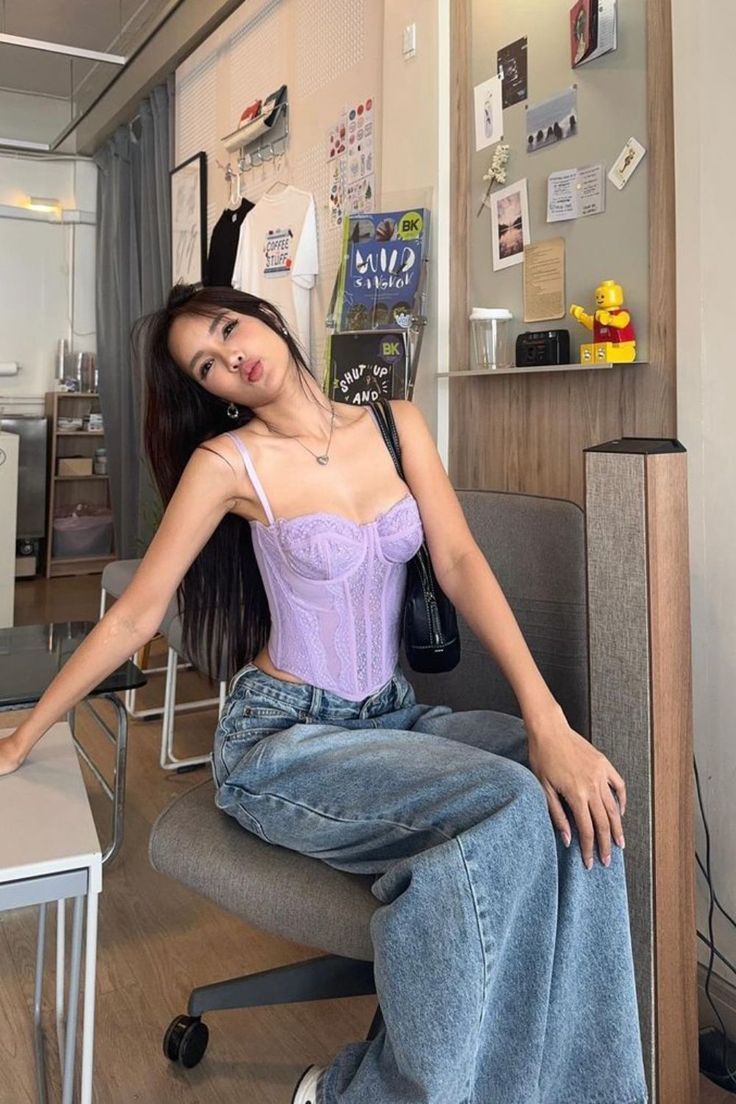 This maxi dress is distinguished by its stunning lace bodice, which is structured in a bustier design and supported by thin, adjustable straps. The waist is defined by a unique diagonal seam where the lace transitions into a smooth, full-length skirt. The skirt is crafted from a high-quality fabric that drapes beautifully. The back of the dress features a sophisticated lace-up corset closure, which not only adds a stylish detail but also ensures a customizable and secure fit. The overall garment is designed for comfort and elegance, making it an ideal choice for formal and semi-formal events.